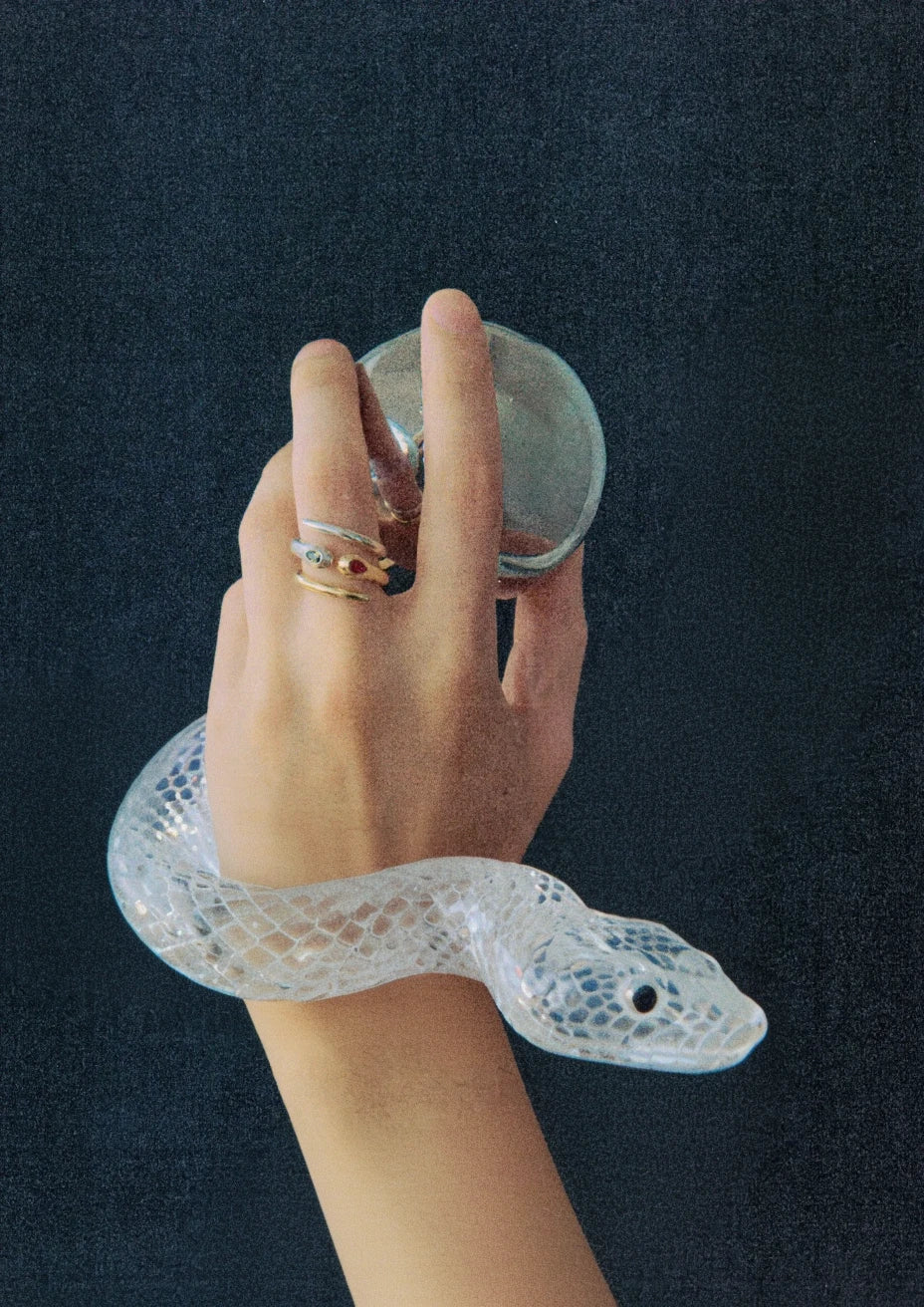 Graedance's Year of the Snake collection—a captivating exploration of duality and connection. Born from our collaboration with Sydney's iconic Chinatown Country Club, Slither reimagines the ancient motif of intertwined serpents through 18k gold vermeil and mixed metals. Adorned with peridot and ruby accents, each piece bridges the mystique of East and West, honoring both Ophiuchus, the snake bearer of Western astrology, and the transformative power of the Eastern snake zodiac.