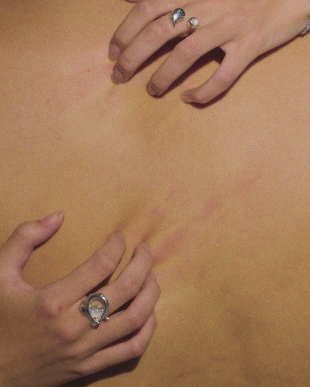 This collection draws from the shifting blues of vast horizons, where sky and sea blur into one endless gradient. Its forms echo tidal movements: fluid, cyclical, and quietly powerful - handcrafted to move with the wearer as naturally as water.